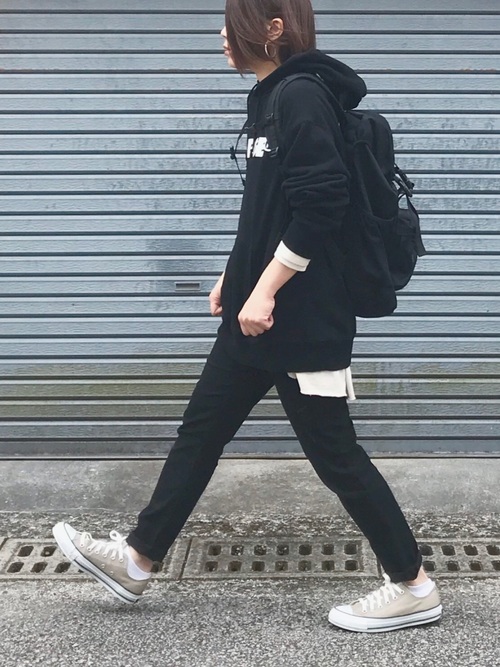 パーカーには 黒スキニー 合わせが間違いない 絶対今っぽくなる春コーデ集 パーカー パーカーパターン 黒 スキニー